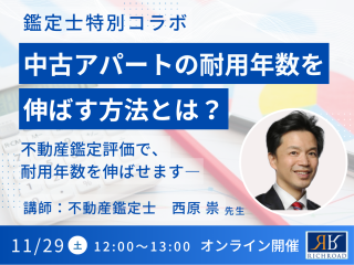【鑑定士特別コラボ】中古アパートの耐用年数を伸ばす方法とは?《11/29(土)オンライン開催》