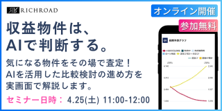 【3,000名突破】気になる物件をデモで査定!購入判断のための「リッチAI」活用セミナー《4/25(土)》