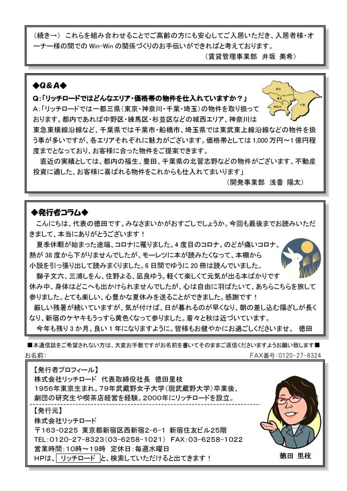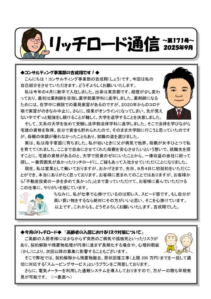 いつもリッチロード通信をご覧いただき、ありがとうございます。