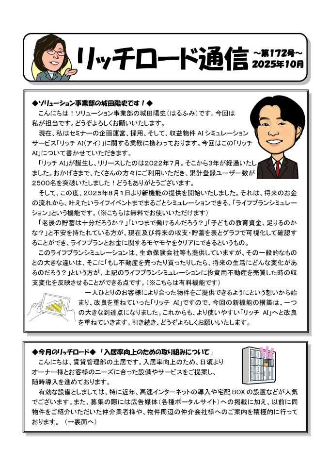 今月のリッチロード:『入居率向上のための取り組みについて』
